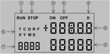 ⑧ 數(shù)值顯示, 當(dāng)顯示模式為16 位時(shí), 上面5 個(gè)位數(shù)為數(shù)值的顯示。