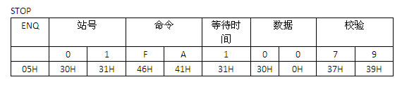 2,要執(zhí)行停止命令時(shí),輸入下面數(shù)據(jù):