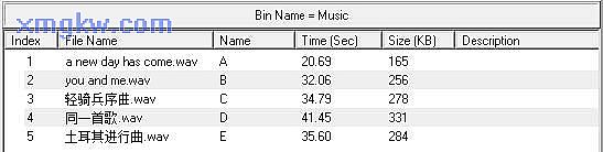 Play List):根據(jù)需要,將各個(gè) Bin中的語音文件按順序添加到播放清單中,以供生成最終的工作文檔。選擇菜單欄【 Play List】下的【 Create Play list】,本例中更名為【PlayList0】,并右鍵點(diǎn)擊曲目 A,選擇【 Add To Play List】?【Move to】:1。重復(fù)上述操作,將剩下的 4個(gè)曲目添加到播放清單上去。下圖為 PlayList0的內(nèi)容: