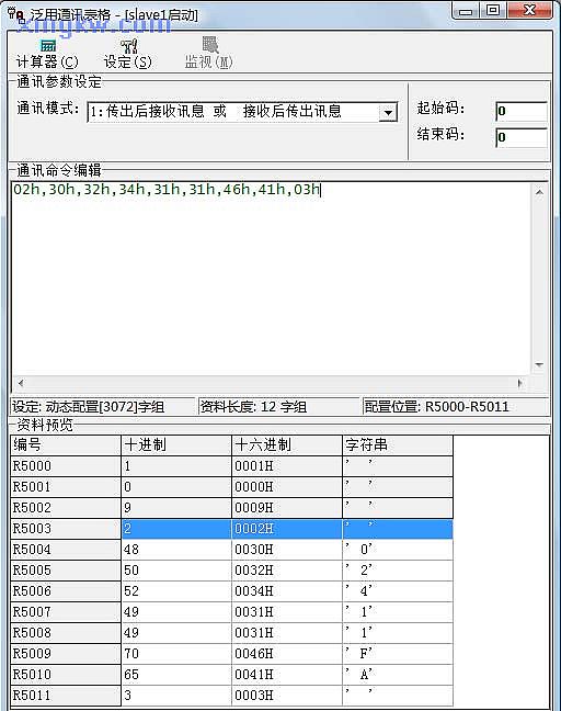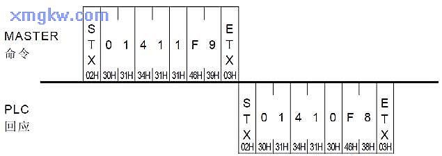 以上圖為例,站號 01,命令碼 41,數(shù)據(jù)為 1,即是 Master向站號為 1的PLC發(fā)送“run”命令。而返回的PLC回應(yīng)數(shù)據(jù)中,錯誤碼為 0,表示通訊成功。