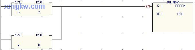 3. D10的設(shè)置值不在 0~7范圍時(shí), D10也被寫入 FFFFH,保證不會(huì)因 D10寫入其它值也能使 Y0~Y7動(dòng)作而導(dǎo)致輔助流水線暫停工作。