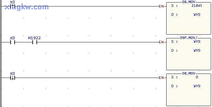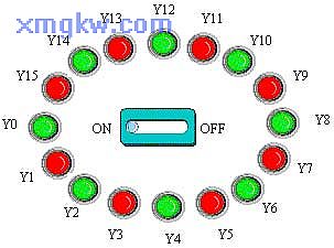OFF→ON狀態(tài)變化時, WY0=21845(5555H),Y15~Y0的狀態(tài)為:〝 0101 0101 0101 0101〞,即偶數(shù)編號的彩燈亮;