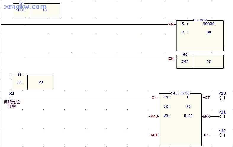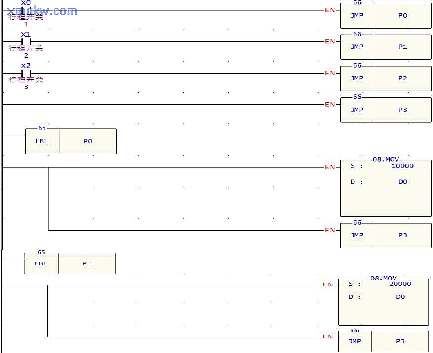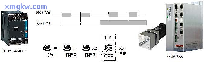 【控制要求】永宏FBs -14MCT發(fā)送脈沖控制伺服電機,有 3種工作行程距離,可通過三個開關(guān)任意選擇,滿足不同的工作需要。