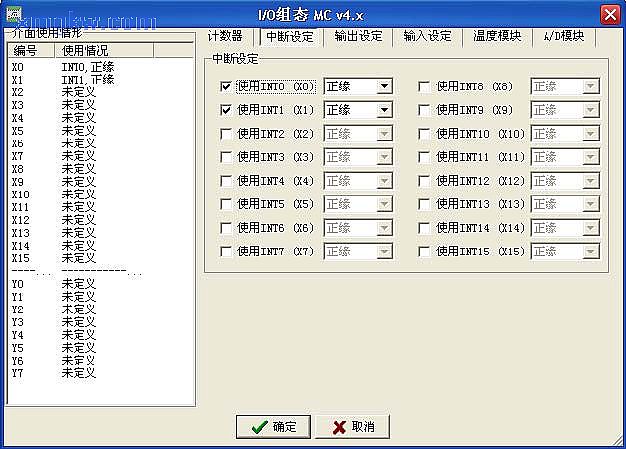 1. “X0+I”和“ X1+I”是永宏 PLC系統(tǒng)預留的外部輸入中斷標號。當 X0、X1上升沿觸發(fā)時,執(zhí)行對應的 “X0+I”和“X1+I”中斷。
