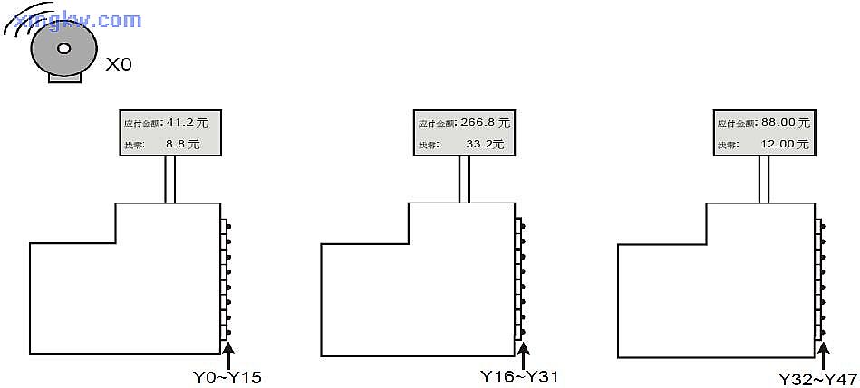 16個抽屜。通過控制 D10可以控制 FOR~NEXT循環(huán)的次數(shù),從而決定控制錢柜的數(shù)量,本例中D10=3,即可對 3個錢柜的 48個抽屜進行控制。
