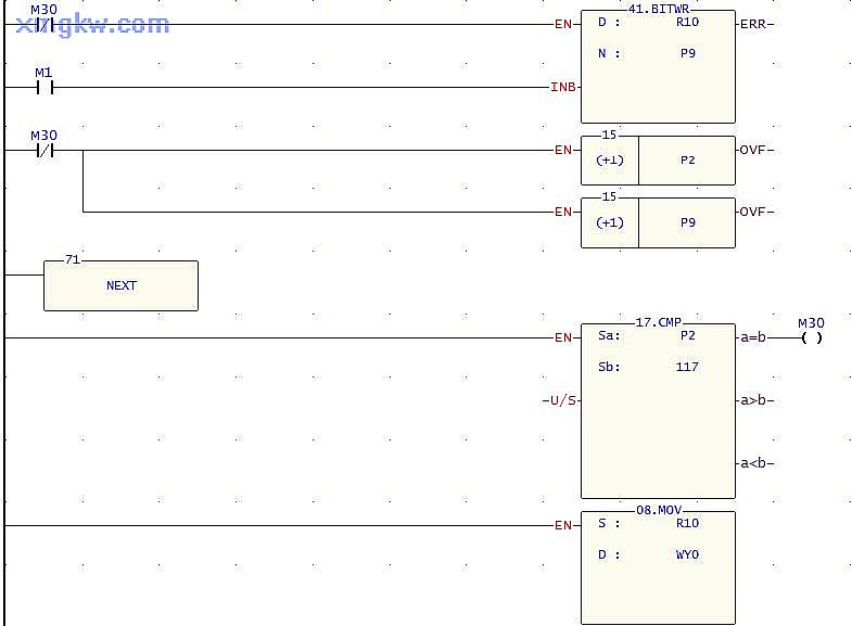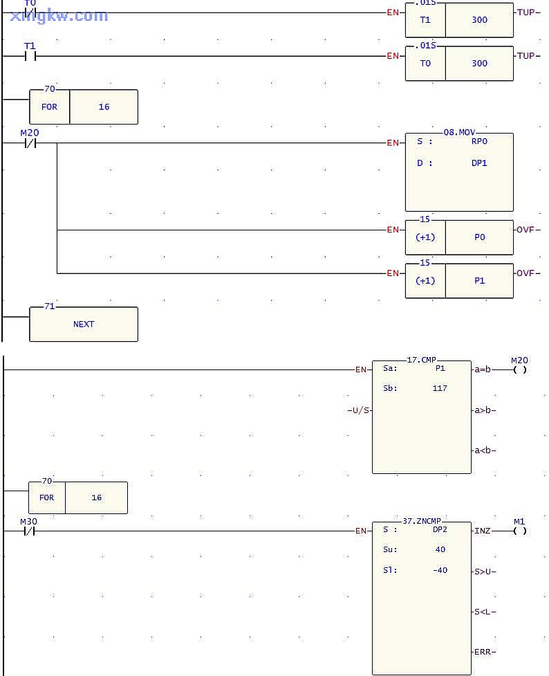 【控制要求】 FBS-40MA + FBs-TC16,偵測外部 16路溫度 , 每隔3秒將新溫度數據放入 D101-D116;當溫度超過 40℃或小于- 40℃時,正常指示燈滅。