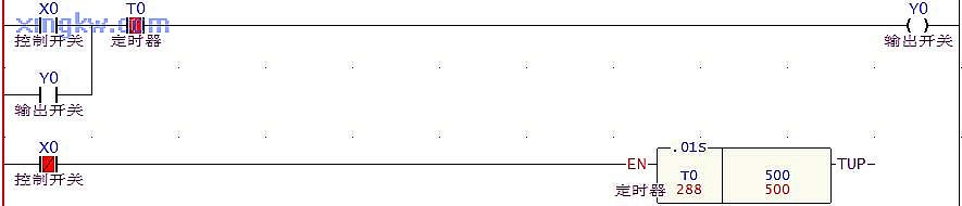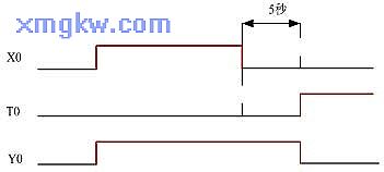 當開關(guān) X0接通為 ON時燈 Y0亮,當開關(guān) X0斷開為 OFF時,需再經(jīng)過 5秒鐘后 Y0燈才熄滅。【組件說明】