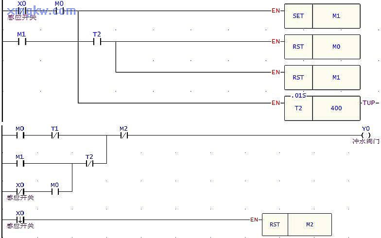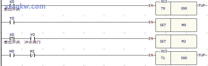 M1的自保,不論其間 X0是否發(fā)生狀態(tài)的改變,都會(huì)順利完成第二次沖水動(dòng)作。