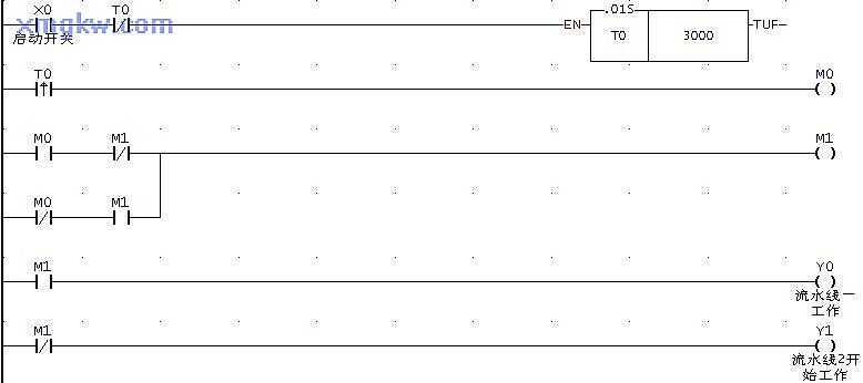 【控制要求】 PLC產(chǎn)品生產(chǎn)線中,一個作業(yè)員需同時負(fù)責(zé)將兩條傳送帶上的產(chǎn)品放入到包裝箱里。將一條傳送帶運行 30秒后,該條流水線停止傳送,另外一條流水線開始運行 30秒。如此,兩條傳送帶交替運行,保證作業(yè)員有足夠時間去將產(chǎn)品放入包裝箱。