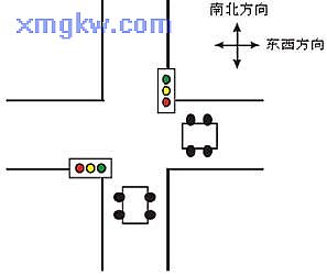 東西方向流程處于紅燈狀態(tài)時,南北方向流程應相應的處在綠燈,綠燈閃爍,黃燈流程。