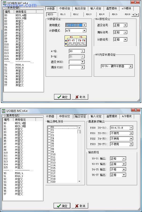M0來(lái)控制 PLC發(fā)送脈沖信號(hào),脈沖信號(hào)由 Y0、Y1輸出。將伺服電機(jī)的轉(zhuǎn)速由編碼器輸出的回饋信號(hào)接入到 X0、X1高速計(jì)數(shù)端, X0、X1對(duì)應(yīng)硬件高速計(jì)數(shù)器 HHSC0,其最高響應(yīng)數(shù)頻率可達(dá) 920KHz。